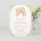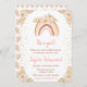 This cute and whimsical baby shower invitation features a boho rainbow, confetti and floral arrangements with pampas grass in beige, pink and brown neutral tones. The text combines handwritten script and sans serif fonts for a stylish and modern look. This is perfect for a spring or summer baby shower.