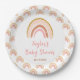 This cute and whimsical plate features a boho rainbow, confetti and floral arrangements with pampas grass in beige, pink and brown neutral tones. The text combines handwritten script and sans serif fonts for a stylish and modern look. This is perfect for a spring or summer baby shower.