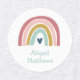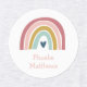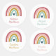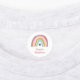 This rainbow name iron-on clothing label features a sweetly coloured rainbow with heart in pink, blush, mustard, aqua and navy.