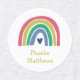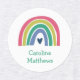 This rainbow iron on clothing label features a sweetly coloured rainbow with heart in pink, lime, mustard, green and navy.