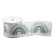 Sage green boho rainbow Satin Ribbon, designed to add a bohemian-inspired touch to your event décor. The ribbon features a delightful rainbow pattern with earthy sage green hues, making it a versatile choice for a variety of occasions such as weddings, birthdays, and baby showers.