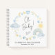 Cute baby boy shower guest book notebook featuring pastel blue and yellow watercolors of a boho rainbow, sun, hearts, stars, moons and clouds and "Oh Baby!" in a stylish calligraphy script. Personalize the mother-to-be's name and the shower date in simple modern typography.