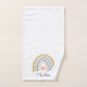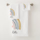 Trendy boho watercolor rainbow personalized girl's bathroom towel set. Girl's room decor. A cute birthday gift for your daughter's bath decor.