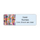 These address labels have a boho modern design of rectangles attached to vertical lines in various sizes and retro colours.