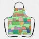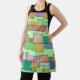 This apron has a boho modern design of rectangles attached to horizontal lines in various sizes and boho colours.