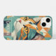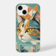 A beautiful abstract boho retro image of a cat portrait in the colours orange and green. Add a name to make it personal.