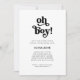 This simple and boho. black and white baby shower invitation for a baby boy features retro typography that says "oh boy."