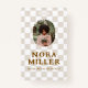 Add a touch of retro flair to your professional look with our modern retro chequerboard business ID badge. Featuring a chic cream beige chequerboard pattern, the front includes a circle photo frame for easy personalization with your photo, name, and job title. The reverse side continues the chequerboard design, with space for a barcode or other details. Stylish, functional, and customizable—this ID badge is perfect for any modern professional. Design and layout by © Moodthology
