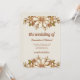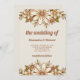 These trendy wedding invitations feature stylish retro flowers and leaves in vintage neutral colours like brown, beige, gold, olive green, and ivory cream with retro style text.