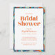 Are you looking for a modern and trendy invitation for your Bridal Shower? Look at our Boho Retro Green Orange Typography Wavy Bridal Shower Invitation! This wavy bridal shower invitation features beautiful watercolor hand-painted wavy lines artwork with a colourful and boho abstract design giving a unique and trendy look.