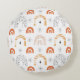 Boho retro rainbow line art moon stars round pillow