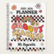Get ready to spread some groovy vibes with a retro boho colours "Groovy Teacher" planner! This funky and stylish design is perfect for teachers who love to bring a touch of retro flair into the classroom. The school year and PLANNER at the top and teacher's name at the bottom are in a playful font and can be changed by clicking on the Personalize button and inserting your text. Order yours today for your favourite teacher, daycare worker or home school parent, it's the perfect choice for a teacher who loves to embrace their inner groove and show their passion for teaching.