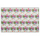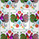 This is cute fabric for many projects, including kitchen curtains or anything kitchen related. It features a wonderful design of two proud roosters standing breast to breast. One rooster is coloured red, green, pink purple, and black, and the other one is pink, red and black. The rooster images are framed with brilliantly coloured flower images in red, gold, yellow, blue, and green. Very colourful, bright, and fun for use throughout the year. Be sure to see our matching kitchen designs in our store.