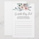 Boho rose themed baby shower guess the baby food game card features a watercolor pink rose illustration and watercolor greenery eucalyptus garland and elegant handwritten style font.