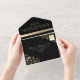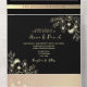 Elegant, vintage, boho rose gold and black all-in-one wedding invitation with faux gold floral lace and custom picture of the couple at the back.