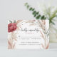 This elegant RSVP card features watercolor pink roses, neutral pampas grass, and soft greenery in a romantic boho layout. Perfect for rustic, outdoor, or modern wedding themes. Includes options for guest names, attendance, and meal preferences. Fully customizable to match your wedding suite. Ideal for coordinating with blush or dusty rose floral invitations.