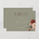 Introducing our exquisite boho rust & neutral fall floral wedding reception card, a perfect blend of elegance and bohemian charm! This stunning card features a sage green background that sets the tone for a romantic and timeless celebration. Adorned with two captivating boho floral bouquets, this card embodies the essence of natural beauty and rustic allure. The boho floral bouquets showcase a delicate blend of cream, peach, blush, and rust-toned flowers, meticulously arranged with lush greenery. These ethereal blooms symbolize love, joy, and the promise of a blossoming future together. The harmonious combination of colours and textures creates an enchanting visual spectacle that will captivate your guests' hearts. Let your love story unfold in style with this enchanting card that will set the perfect tone for your special day. Created by Simply Farmhouse Press, it's part of the Boho Rust & Neutral Fall Floral wedding suite of cards.