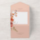 ALSO AVAILABLE WITH A QR CODE TO SCAN IN THE RSVP AREA OR WITHOUT DINNER SELECTION OPTIONS. This design features a burnt orange rust, peach, brown and cream watercolor fall boho floral corner bouquet geometric frame on a peach background. Personalized All-In-One invitations are a unique combination of both a beautifully printed custom invitation with an easy to tear off perforated RSVP postcard. And they are so easy to use! You simply fold, then seal the back flap with the three included clear stickers, and mail. And when your guests receive your custom invite, they just tear the perforated RSVP Card off and drop it back in the mail to you!