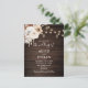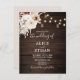 Elegant rustic wedding invitation features neutral flowers and pampa grass on a wood background.