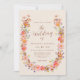 Celebrate your autumn wedding in style with this boho fall modern wedding invitation featuring a hand-painted wildflower wreath in warm, earthy tones. Perfect for a rustic or bohemian-themed wedding, this invitation includes rich shades of terracotta, burnt orange, beige, peach, and golden yellow ideal for fall wedding colour palettes.
