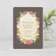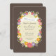 A rustic wedding invitation suite framed with a wreath of pretty flowers, elements that make it a perfect choice for spring and summer weddings. Little arrows and hearts add a romantic touch.