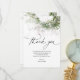 Boho wedding thank you card features greenery leaves, modern calligraphy and photo on the back of the card.