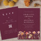 Elegant cream modern typography against an rich burgundy background adds a refined touch, while the whimsical florals bring a personal, boho flair to your invitation. With easy-to-use templates, you can effortlessly customize all your essential wedding details including a wedding website QR code for your guests to easily RSVP online.
