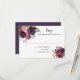 Carton de réponse de mariage boho rustique avec des fleurs aquarelles luxuriantes dans des tons de pourpre, violet, rose, mauve et rouge avec une verdure assortie. Le dos du carton est d'un pourpre foncé. Le modèle est facile à personnaliser en utilisant un mélange de polices de calligraphie amusantes et manuscrites. Faire-part de mariage assorti disponible.