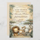 Welcome guests to a warm and whimsical celebration with this Safari-themed baby shower design. Featuring a sweet trio of jungle friends — a giraffe, elephant, and lion — framed by rich boho foliage, earthy neutrals, and soft natural textures.