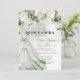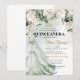 Boho White Dress & White Roses Greenery and Gold Quinceanera invitation