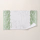 Boho White & Sage Lace Personalized Hand Towel. Lace is graphically designed. No actual lace used on the towels.