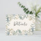 This beautiful wedding details enclosure card has been painted in watercolor and is original artwork from our studio. Featuring eucalyptus and foliage in sage green and dusty blue tones on a beige, cream background Customize with your own personal wedding information, and add a QR code.