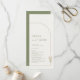 The front side offers a stunning contrast with a faux linen texture, framed by a clean sage green border and adorned with a subtle, hand-drawn botanical accent in the corner. Your program card is presented in a stylish mix of elegant serif and flowing script fonts, all in a matching sage green hue.