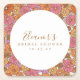 Boho Script Ochre Pink Floral Bridal Shower Custom Square Paper Coaster