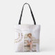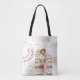 This trendy tote bag features modern neutral colours and boho rainbow geometric shapes. Personalized name is in a simple terracotta colour typography, and your personalize photo sits in a pretty arch frame!
