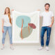 A boho inspired design of simples shapes and lines in rustic colours of brown, beige, and blue with orange highlights.