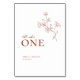 This wedding table number card features a clean white background with a delicate floral line illustration in a warm sienna terracotta tone. The design combines modern serif and script fonts for a simple yet elegant look, creating a refined and timeless style for the wedding setting.