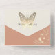 A one-of-a-kind bohemian spring peach all-in-one wedding invitation, featuring a romantic faux gold butterfly that symbolizes spiritual rebirth, hope, and life. This elegant design exudes charm and deep meaning. Personalize it with your wedding details and RSVP information for a truly unforgettable touch.