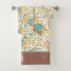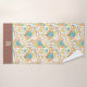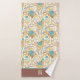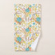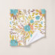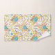 Here's a pretty bath towel set that carries your own monogram at the bottom border of the large bath towel. The floral pattern, which appears on the hand towel, the wash cloth, and the bath towel is in a boho style, and contains colours of blue, gold, peach, and purple brown. The solid border on the bath towel holds your monogram in white, with a matching bouquet of the same flower images.