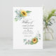 Bright sunflower and eucalyptus wild greenery-themed wedding invitation customizable to your event specifics. Ideal for any given theme or garden wedding. The photo on the reverse is optional. If you would rather remove it, scroll down to the bottom of "Personalize this template" and click on "Edit Using Design Tool". In the Design Tool you can edit, scale, delete or move any text or design elements you wish.