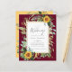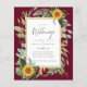 Beautiful watercolor yellow Sunflowers and sage green leaves and foliage feature on this country rustic boho themed wedding invitation.