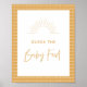Boho script "Guess the Baby Food" graphic in rustic yellow with line art sun detail, baby shower game sign poster.