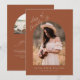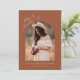 Announce your graduation in style with this stunning Graduation Announcement, designed with an elegant arch photo layout, charming handwriting script, and a warm terracotta background. Perfect for high school, college, or graduate school graduates, this announcement combines modern design with a personal touch. The arch framing your photo adds a sophisticated flair, while the handwritten script gives it a heartfelt and personalized feel. The terracotta background provides a trendy, warm tone that complements the overall aesthetic.