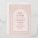 A unique design with multiple delicate arch lines surrounding your wedding invitation information in rose gold foil stamped, over an blush / soft pink with all text in terracotta. On the back add your wedding details and rsvp information.