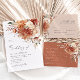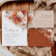 Boho Terracotta Dahlia Floral Élégant Faire-part de mariage Simple. Bouquet de style bohème invitation minimaliste avec fleurs brûlées orange et botaniques en aquarelle imprimée à la main. Veuillez modifier le verso de l'invitation avec votre photo. La couleur arrière - plan de la terre est magnifique pour les mariages rustiques en terre cuite et les mariages de dahlia. Invitations modifiables pour les mariages du printemps, de l'été, de l'automne et de l'hiver.