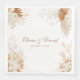 These boho floral wedding napkins showcase a fuller pampas grass and orchid arrangement in warm terracotta tones, perfect for romantic and nature-inspired celebrations. The balanced botanical frame creates an elegant yet relaxed atmosphere for your reception tables. Designed to complement boho, rustic, and autumn wedding themes, these napkins work beautifully for cocktail hours and formal dinners alike. The soft colour palette keeps the design timeless and versatile. Pair with matching menus, place cards, and signage for a cohesive wedding look. A stylish detail that elevates your overall table décor.