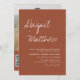 Personalize this Boho Simple Elegant Terracotta Burnt Orange and White Stylish Invitation with your message and details with a elegant photo on the back with QR Code RSVP. This minimalist invitation includes stylish handwritten script typography with a modern colour for the special Wedding day celebration.