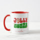 Retro groovy typography customizable script coffee mug for moms. The design features the text "Jolly Mumma" in red and green retro groovy typography with cute boho-themed flowers. The name can be easily customized. Makes for the best personalized gift for yourself, your friends, family members and even neighbours. We have 45+ more Christmas mugs in retro design, watercolor and funny typography-based in our collection that you will definitely love. Merry Christmas!