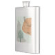 The product is a good size and came exactly as it was pictured.  The lid is not attached to the flask, which could be dangerous on drunken nights... The print came out surprisingly well and looks very sharp.  Would definitely recommend.