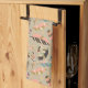 This attractive hand towel features a pattern of boho style feather images in colours of teal blue, gold, dark grey, dusty pink and cream. The pattern is printed on a light tan or ecru background. Perfect for a southwestern or western style decor. Be sure to see the matching products in our store.